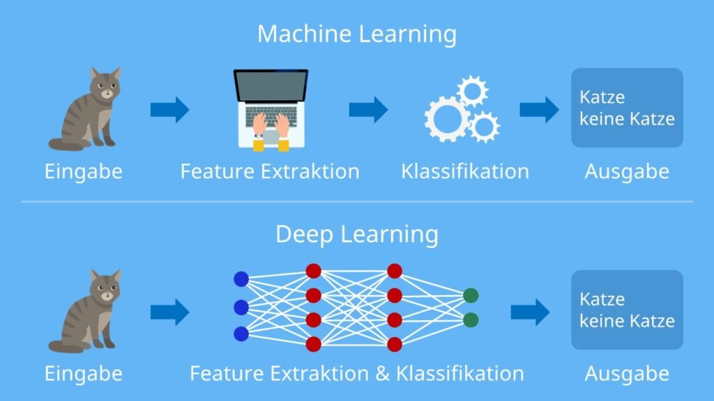 Deep Learning stellt einen bedeutenden Teilbereich innerhalb der Künstlichen Intelligenz (KI) dar, der durch den Einsatz von neuronalen Netzwerken charakterisiert ist. Im Gegensatz zum maschinellen Lernen, welches auf statistischen Methoden basiert, nutzt Deep Learning komplexe Architekturen, um aus großen Datenmengen zu lernen. Diese Methode ist besonders effektiv bei der Verarbeitung von unstrukturierten Daten, wie etwa Bildern, Texten und Audiosignalen.